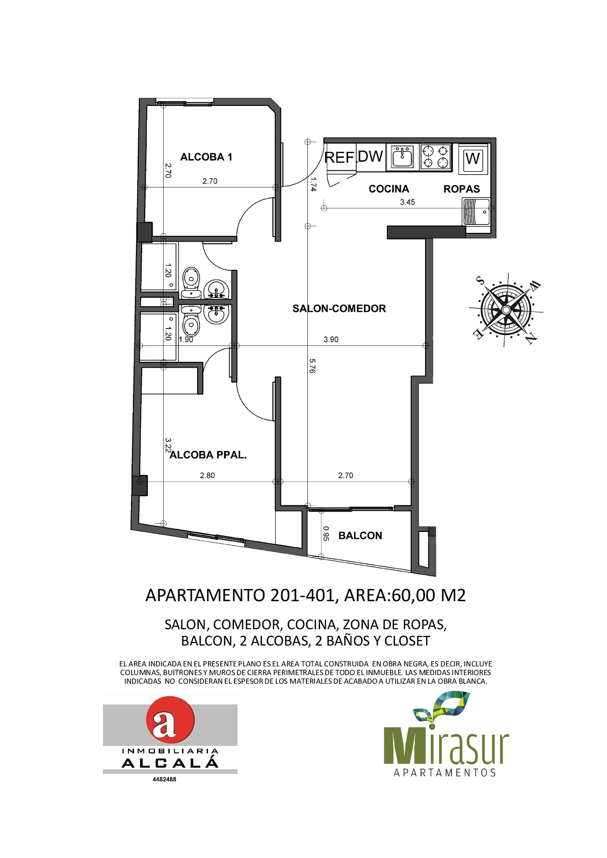 alcobas mas estar, con acabados.