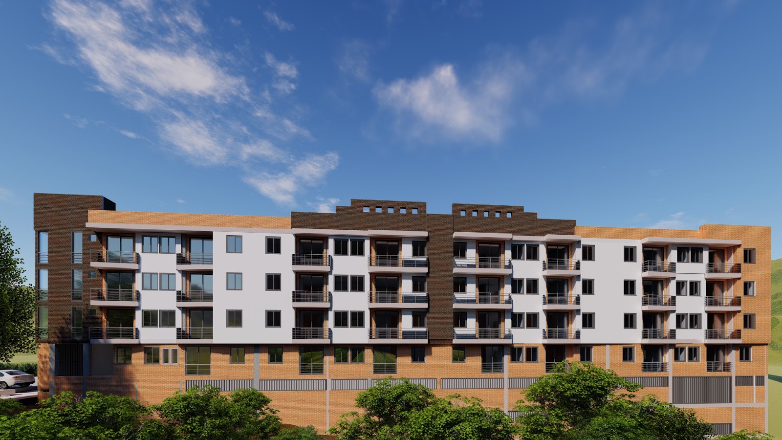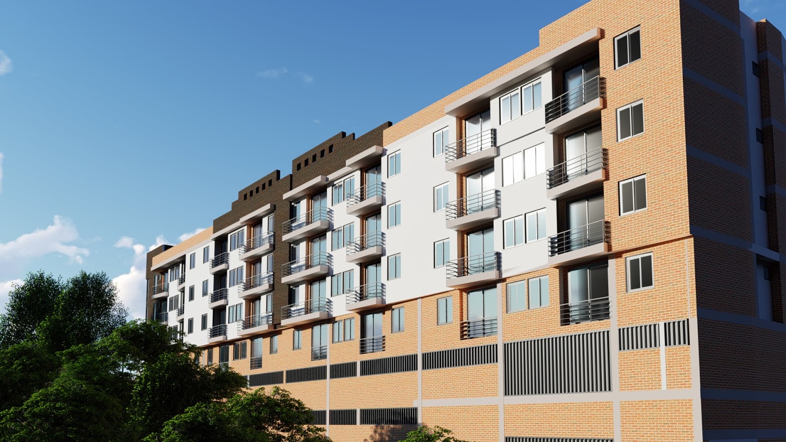 2 torres de 4 pisos de apartamentos con